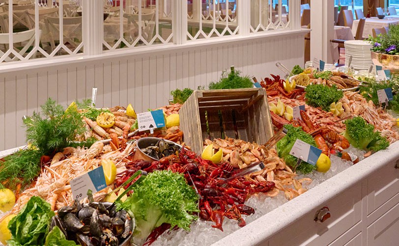 En sak är säker – du behöver aldrig gå hungrig när du kryssar med oss. Välj bland klassisk buffé, maffig skaldjursbuffé, grillat och à la carte. Både finsmakare och skaldjursälskare får sitt ombord i våra restauranger. Testa vår exklusiva ostron- och kaviarmeny eller sätt tänderna i en klassisk räkmacka uppe på Terrassen. En finare utsikt att vila ögonen på mellan tuggarna kan du inte få!